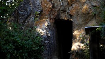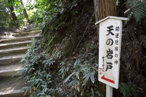 境内には両本宮のほかにも数多の神社があるが、中でも大きな見どころのひとつが、「天の岩戸」だ。内宮に向かって左手、神様が降り立つという影向岩(ようごういわ)そばの坂道を登ったところにある巨岩の穴で、くぐると心身の罪穢れが祓い清められるという。内部は神秘的で、奥に設置された戸隠神社は、思わず手を合わせたくなるような厳かな雰囲気が漂う。