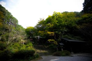 日向大神宮は「京の伊勢」とも呼ばれており、社殿が神明造りであることや、内宮(ないく)・外宮(げく)が奉斎されていることなど、伊勢神宮との共通点も多い。かつては伊勢神宮の代参としても人気を集めていたという。近年では紅葉の隠れた名所としても知られ、社殿との調和や、境内に群生する常緑樹とのコントラストが美しい。師走に入ると多くは散り始めるのだが、初旬であれば遅めの紅葉が見られるかもしれない。