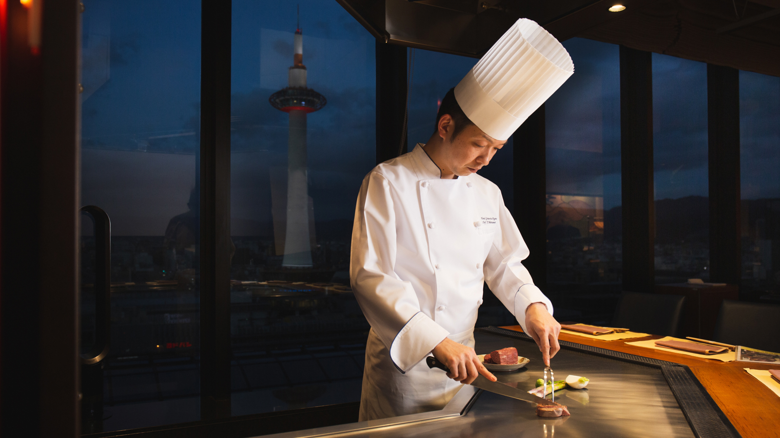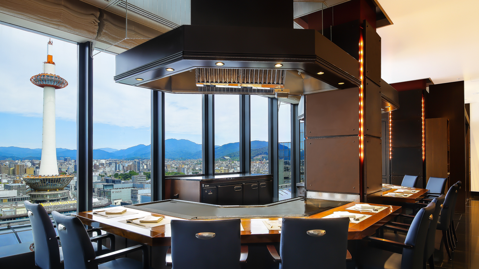 アクセス抜群のJR京都駅直結ホテルグランヴィア京都の最上階に位置し、五山の山並みや京都タワーなど京都の景色を一望できる人気の鉄板焼レストラン。JR西日本ホテルズが策定した衛生基準「Clean & Safety」に則り、上質な時間をお過ごしいただけるよう清潔かつ衛生的な環境づくりを行っています。シェフの見事な手さばきによって目の前で厳選食材を焼き上げる鉄板焼を安心してお楽しみください。