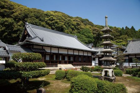 境内に足を踏み入れると、この時期は回廊沿いに咲いたサツキが美しい。手入れの行き届いた庭の粛然たる佇まいに、鮮やかな赤やピンクが華やかさを添えている。本堂は伏見桃山城の遺構で建立。縁板の天井には、武者たちが残した血の手形や足跡を見ることができ、廊下は、歩けば小気味よい音のする鶯張り。本堂の西にあるのが、坐禅道場である僧堂。坐禅の際に使う座蒲がずらりと並ぶその内部は、厳粛な雰囲気が漂う。興聖寺は道元禅師初開の禅道場として知られ、ここで日夜、全国から集まった修行僧が、一切の思慮分別を超越した只管打坐を続ける。その門戸は一般に向けても開かれおり、日曜参禅会、体験坐禅なども行われている。他にも、寺を開山した道元禅師の木像が安置された開山堂や、小滝の流下する内庭を有した大書院など、各堂宇は回廊で結ばれ、その閑寂な空間をゆったりと巡ることができる。