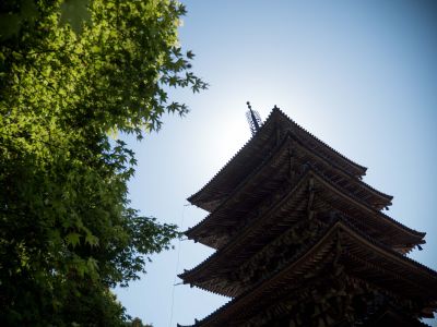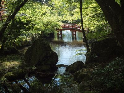初夏から盛夏にかけて、桜の名所「醍醐寺」は、見事な新緑の世界につつまれる。参道の空を覆うばかりの清々しい青もみじは、趣深く、その美しさもまた格別だ。自然につつまれた境内、雄大な伽藍と深い緑の中で、ゆるりとした時の流れを愉しみながら、その古えに思いを馳せるのも一興かもしれない。